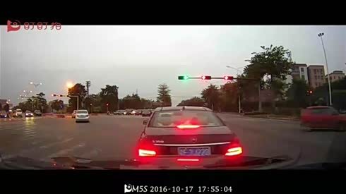 居然直接走了 实拍轿车路口追尾奔驰S级
