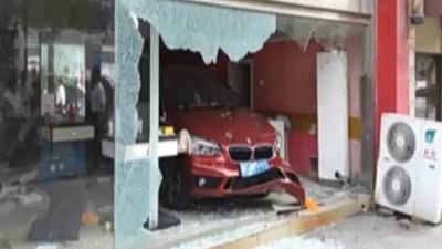 太恐怖 女司机倒车误踩油门撞进商店