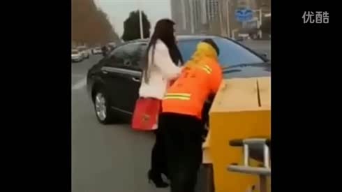 司机太蛮横 环卫工刮蹭奔驰车鞠躬道歉