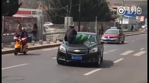 不给就毁车 一女子拦车要钱好似神经病