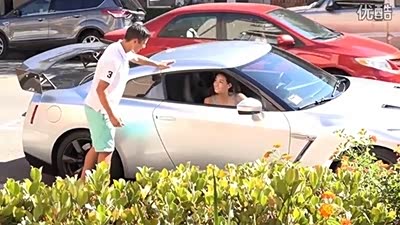 把妹神器 国外16岁男孩开GT-R街头搭讪