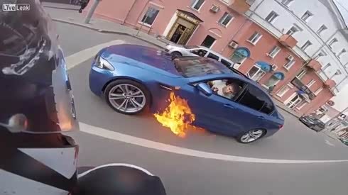 倒吸一口凉气 宝马M5着火司机突然狂飙