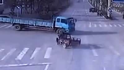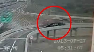 恐怖 实拍拖挂货车急刹集装箱甩落桥下