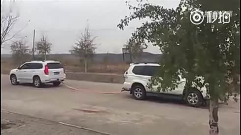 你猜谁能赢?实拍普拉多与哈弗H9拔河