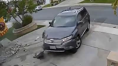 肯定是新手 实拍司机驾车连续撞击房屋