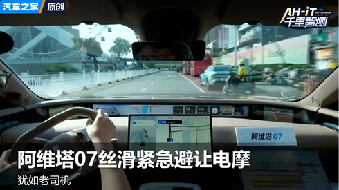 阿维塔07丝滑紧急避让电摩 犹如老司机