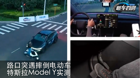 路口突遇摔倒电动车 特斯拉Model Y实测