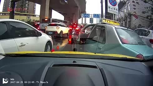 出租车横行霸道 乱加塞结果蹭上了吧!