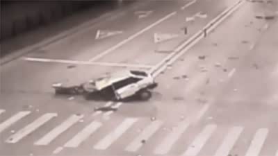 粉身碎骨 轿车路口遭超速车猛烈撞击
