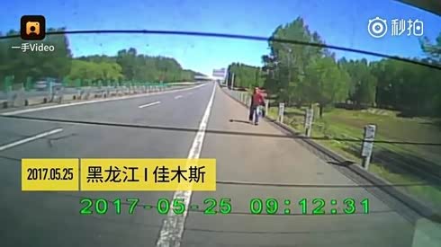 捡了一只鸡 司机高速撞飞过路的野鸡