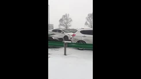 雪天路滑 哈大高速公路数十辆车连撞