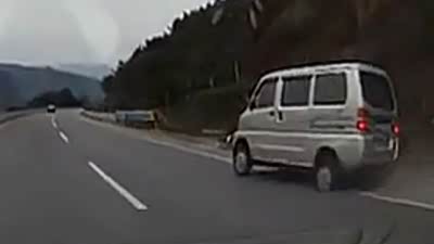 公路惊险一幕 实拍面包车突然爆胎失控