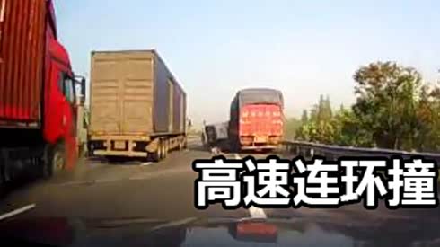 白色卡车还好吗?高速实拍卡车连环车祸
