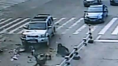 作假成真!实拍女子碰瓷失败后被撞飞