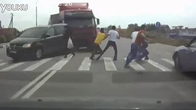 惊魂一刻 实拍失控渣土车横扫斑马线