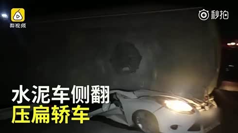 支离破碎 轿车盲目变线遭卡车瞬间摧毁