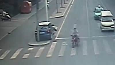 吓死人!实拍半挂车闯红灯撞惨小轿车