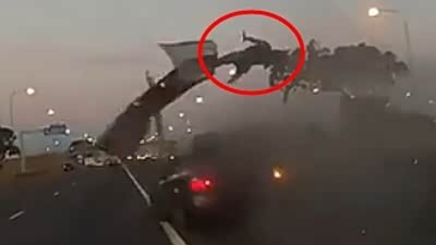 司机被甩出!敞篷跑车超速失控撞隔离带