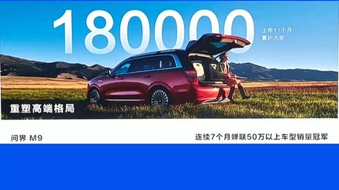 问界M9连续7个月 蝉联50万以上车型销量冠军!