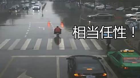 乱闯路口 女子骑电动车闯红灯被撞飞