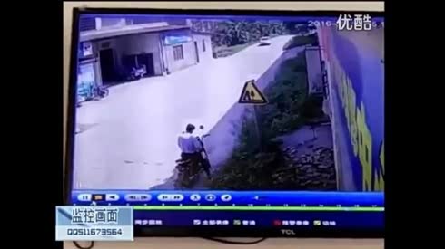 闯红灯酿惨剧 摩托车粉碎人被撞飞数米