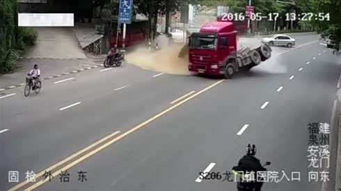 都是超高惹的祸 实拍货车瞬间翻下桥