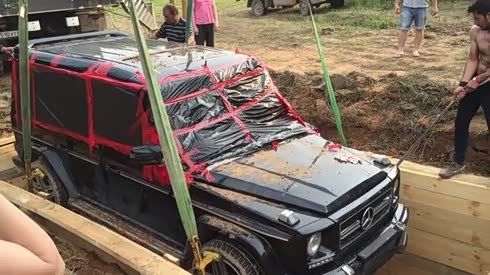 这是多大仇 奔驰G级被从墓穴中挖出