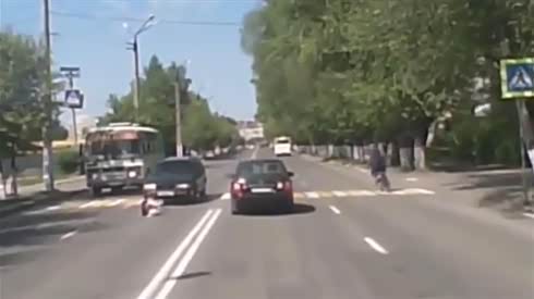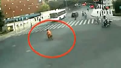 斑马线撞上小孩 路人发怒爆踹肇事司机