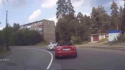 底儿朝天!奔驰敞篷跑车超车失控翻车
