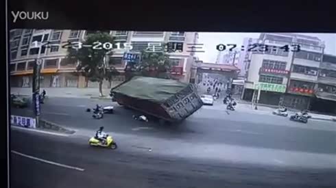 拉煤车侧翻压倒电动车 一男生当场死亡