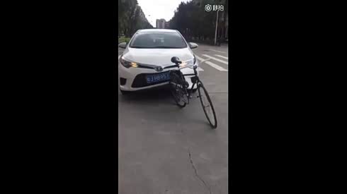 配乐才是亮点 悲催轿车不慎追尾小牛