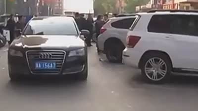 男子抱膝惨叫 银川宝马女怒撞卡宴男