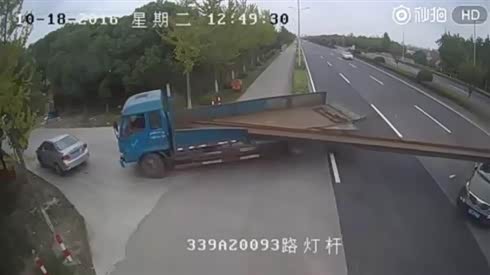 这也太恐怖了!SUV撞上大卡车上的钢条