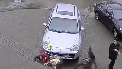 油门当刹车!女司机失误冲撞人惊魂一幕
