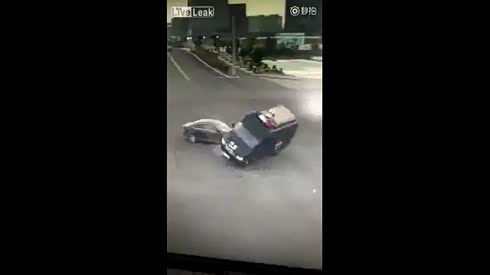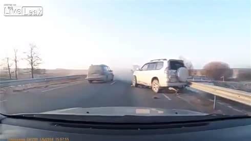 太恐怖了 丰田普拉多迎头撞散转弯车辆