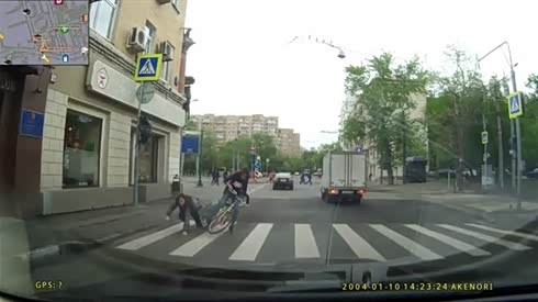 顾此失彼 女子过马路只看一边结果撞车