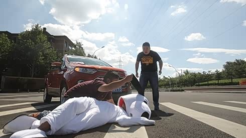 招惹谁了?倒霉奔驰轿车连续遭轮胎撞击