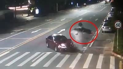 司机太狠了 摄像车直接撞倒挑衅摩托车