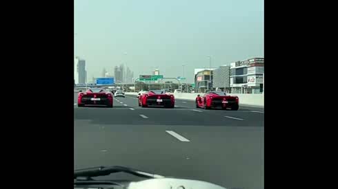 三辆法拉利LaFerrari高速上并行!