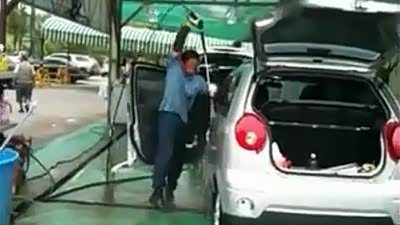 这下尴尬了 实拍普拉多拔树桩引发悲剧