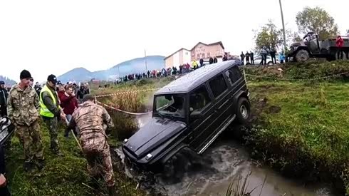 发动机舱进水 奔驰G级水沟越野被惨虐