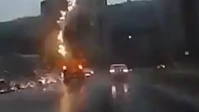 实在太恐怖!闪电直接击中行驶车辆