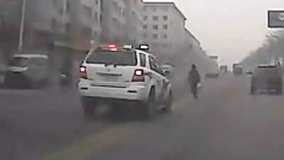 意外悲剧 行人违规过路遭逆行警车撞击