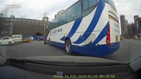 大巴盲区害人!看女子与死神擦肩而过