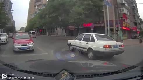 撞完就跑了 摄像车紧追逃逸肇事轿车