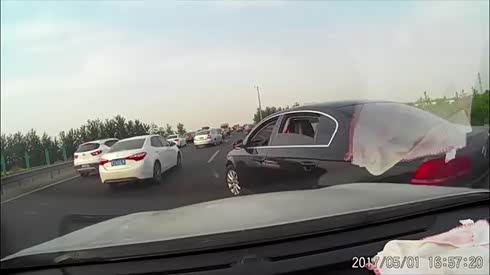 霸道车主!应急车道强行并线发生剐蹭