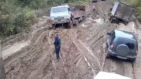也有趴窝时候!看卡车如何从泥潭路脱困