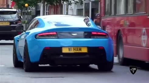骚蓝马丁Vintage V8 版本伦敦街头实拍 秀加速和排气