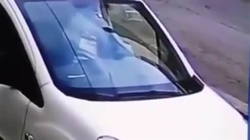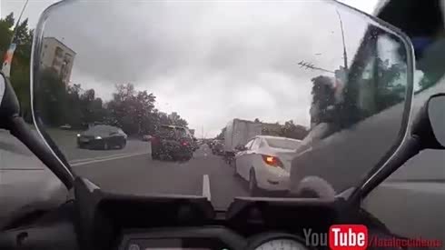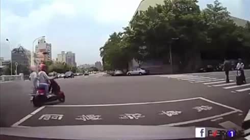 重摔倒地不起 监拍女子骑摩托过路口被面包车撞飞