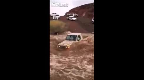 阿拉伯小哥驾车玩命渡河